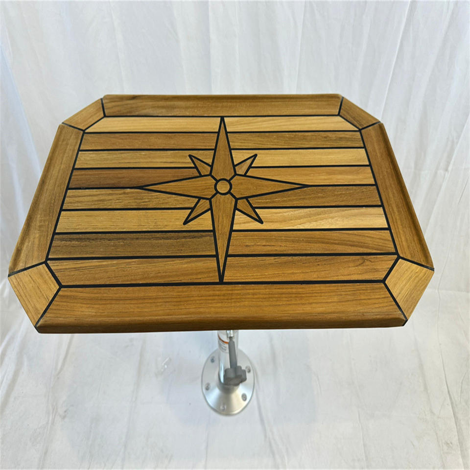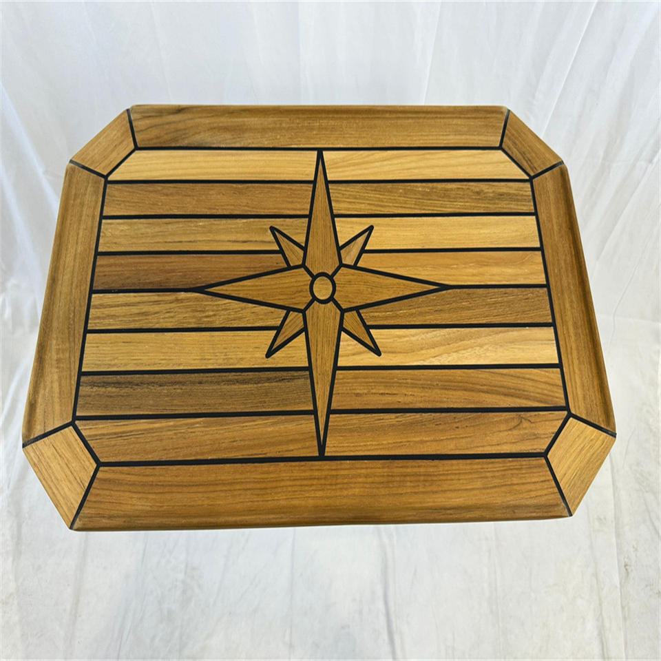 Tablero Rectangular de Madera de Teca con Patrón de Estrella, 375x600 mm, Bordes Rectos, Accesorios Marinos Populares para Yates, Patio, Exterior