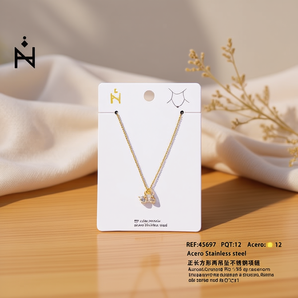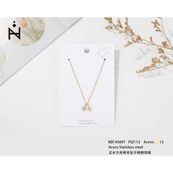 Collar de Acero Inoxidable Rectangular con Dos Colgantes de 12 mm, Acero 45697