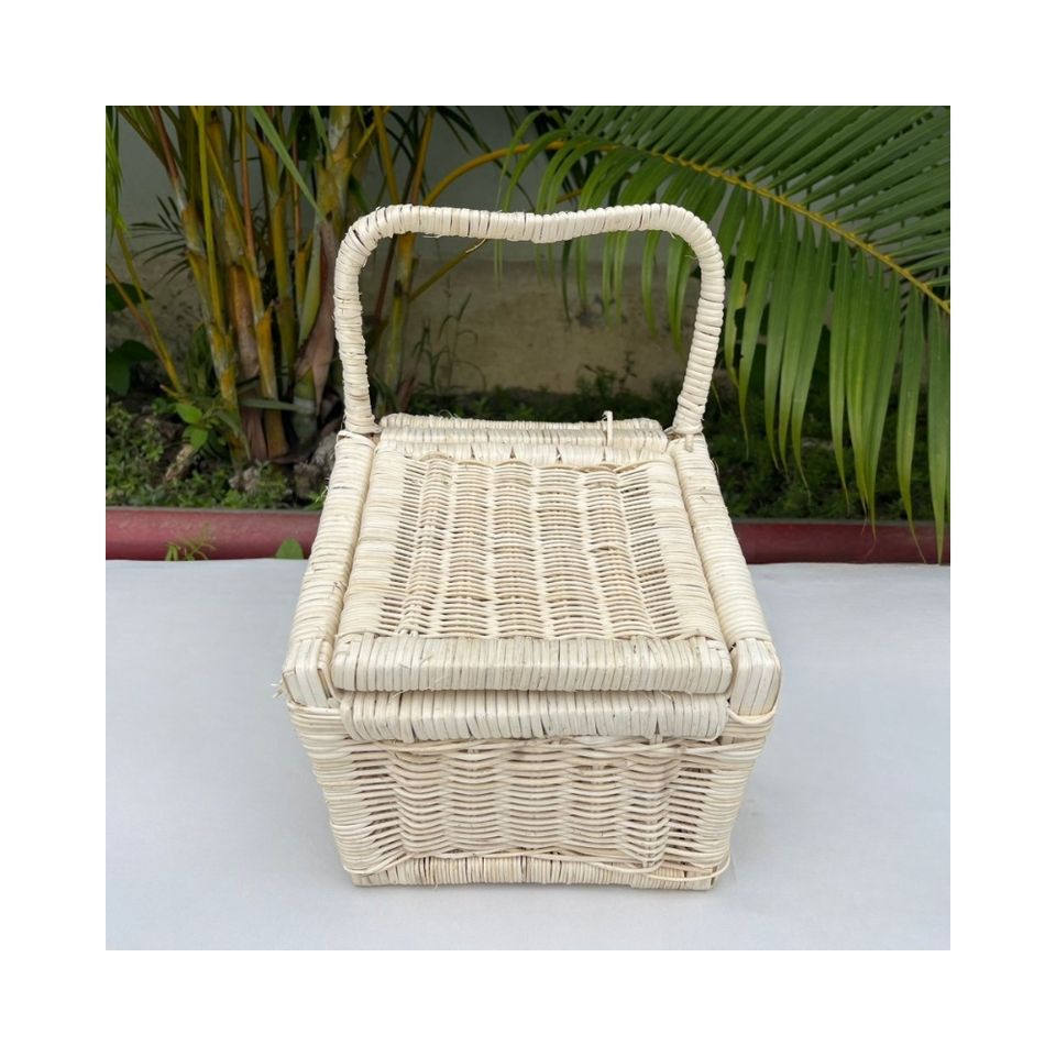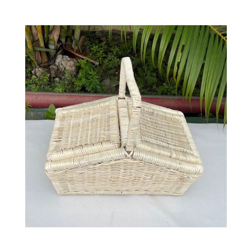 Cesta Rectangular Blanca de Mimbre para Picnic y Compras - Organizador Ecológico para Cuarto de Bebé