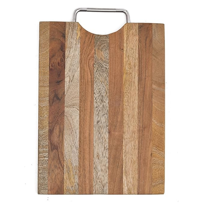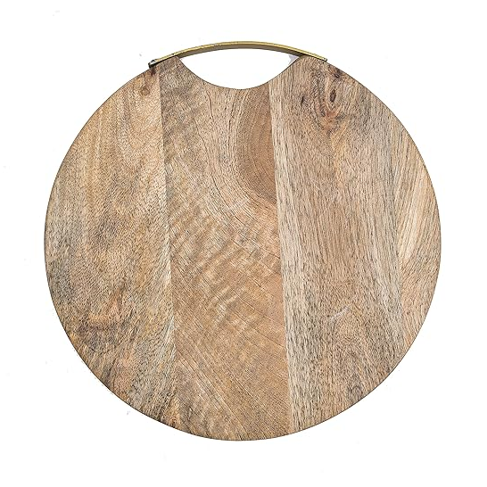 Tabla de cortar de madera rectangular con mango de acero para cocina, artículo de artesanía india ecológico, forma redonda de madera Natural