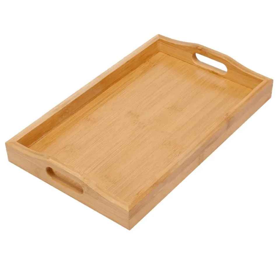Bandeja Rectangular de Madera para Servir con Asas Doradas, Diseño Moderno y de Lujo, Alta Calidad para Catering, Cumpleaños, Aniversarios y Otras Ocasiones