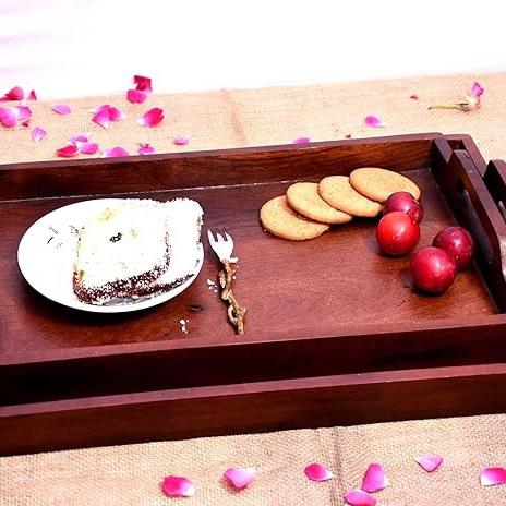 Bandeja Rectangular de Madera para Servir con Asas, Bandeja de Madera Maciza para Comida, Café, Té, Desayuno, Decoración del Hogar