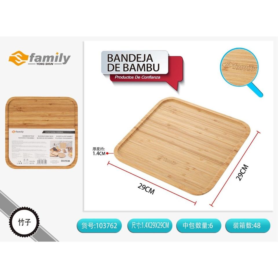 Bandeja de bambú rectangular 29,5*29,5*1,3 ~ 1,4 cm-Accesorios de mesa