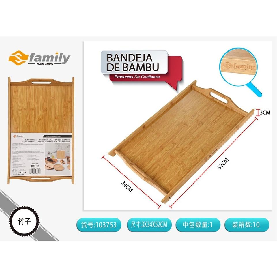 Bandeja rectangular de bambú con asas 52*34cm para cocina y servicio