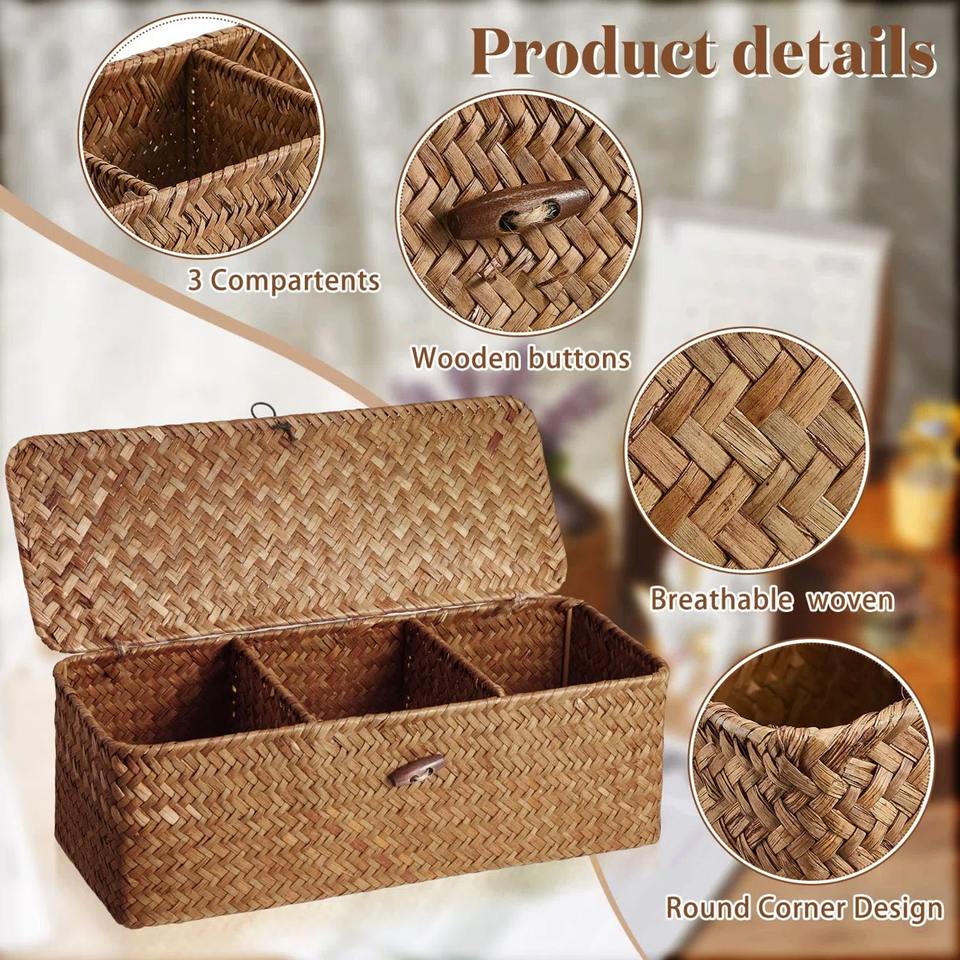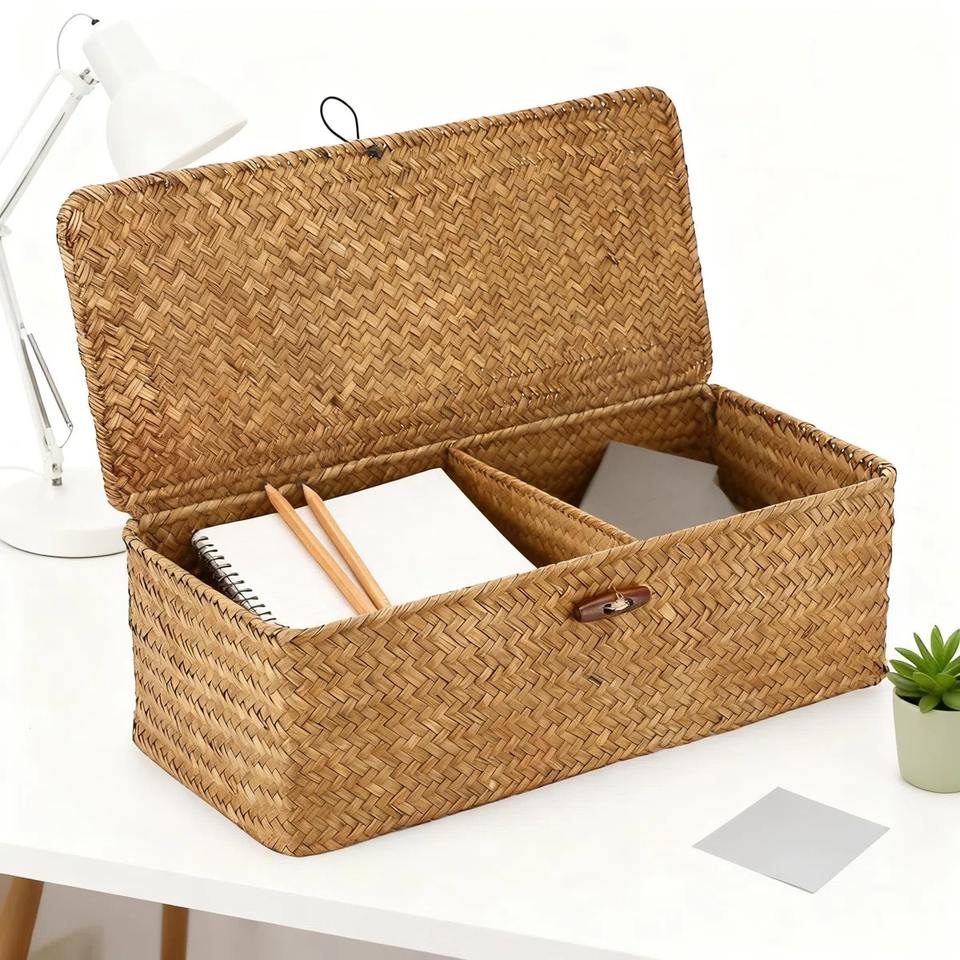 Cesta rectangular compartimentada de algas marinas, cesta de almacenamiento hecha a mano, venta al por mayor, ecológica, hecha en Vietnam