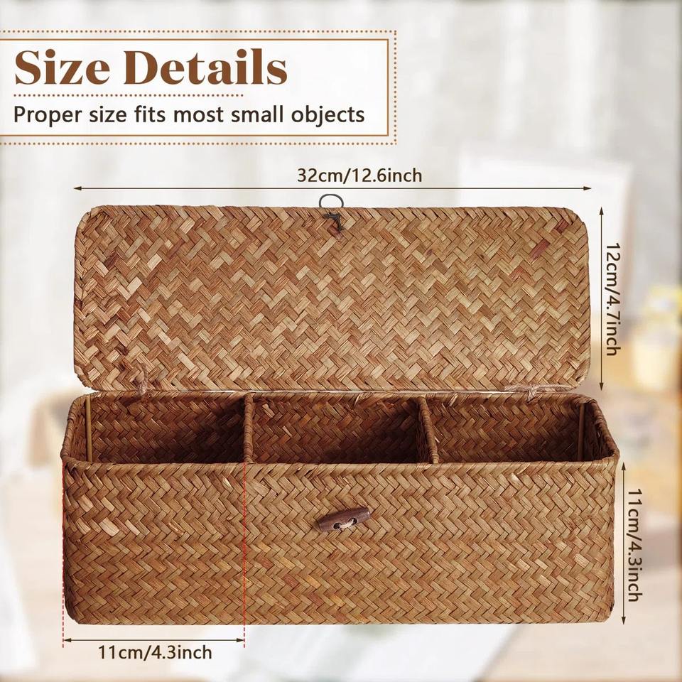 Cesta rectangular de junco marino:Tamaño: L12,6xW4,7xH4,3 pulgadas