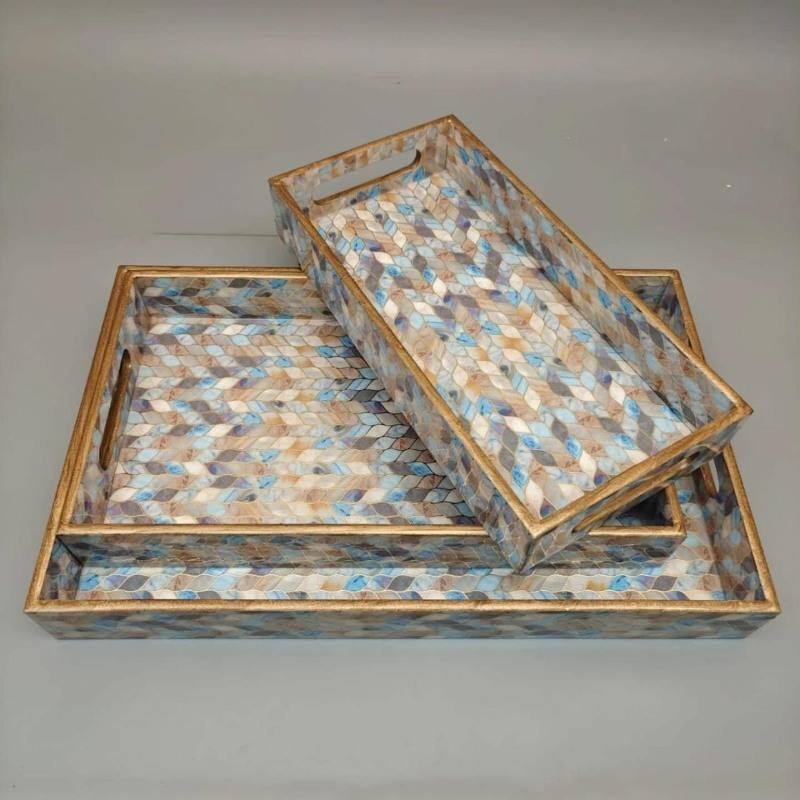 Bandejas rectangulares decorativas para servir con diseño geométrico floral impreso y marco metálico, juego de 3 piezas
