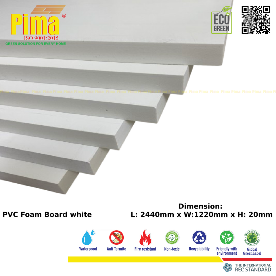 Lámina de Espuma de PVC WPC Blanca Reciclable de 20 mm de Espesor, Densidad de 0.6 G/cm3, Paneles Anti-Termitas para Muebles de Cocina