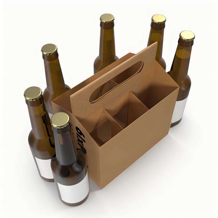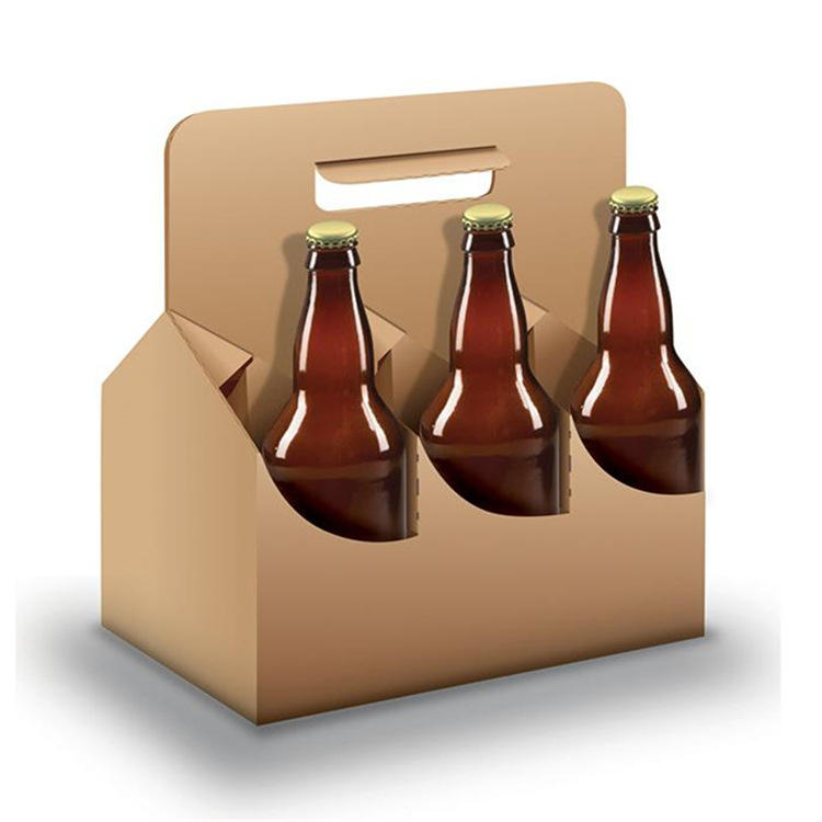 Caja de papel con asa personalizada para cerveza, café, vino, licor, cóctel