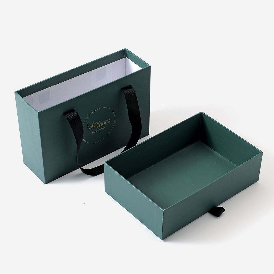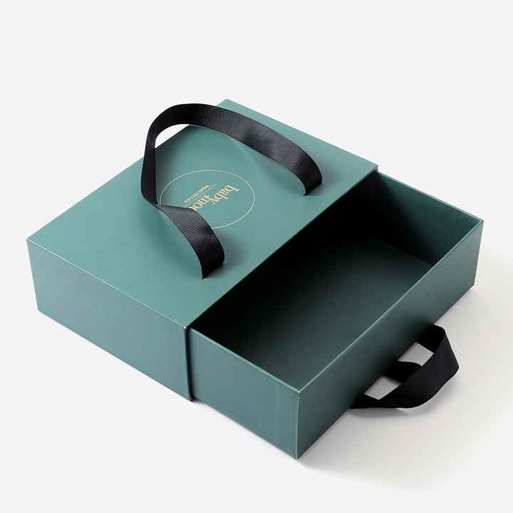 Caja de embalaje de impresión personalizada de 4 colores reciclable caja de cajón deslizante de cartón rígido con asa de cinta caja de regalo de lujo portátil