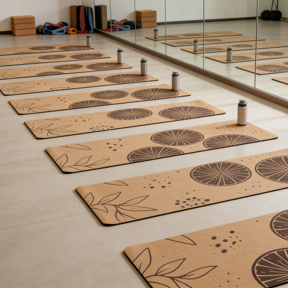 Tapetes de Yoga de Corcho y Caucho Reciclables Personalizados con Logotipo en Relieve y Bolsa para Yoga