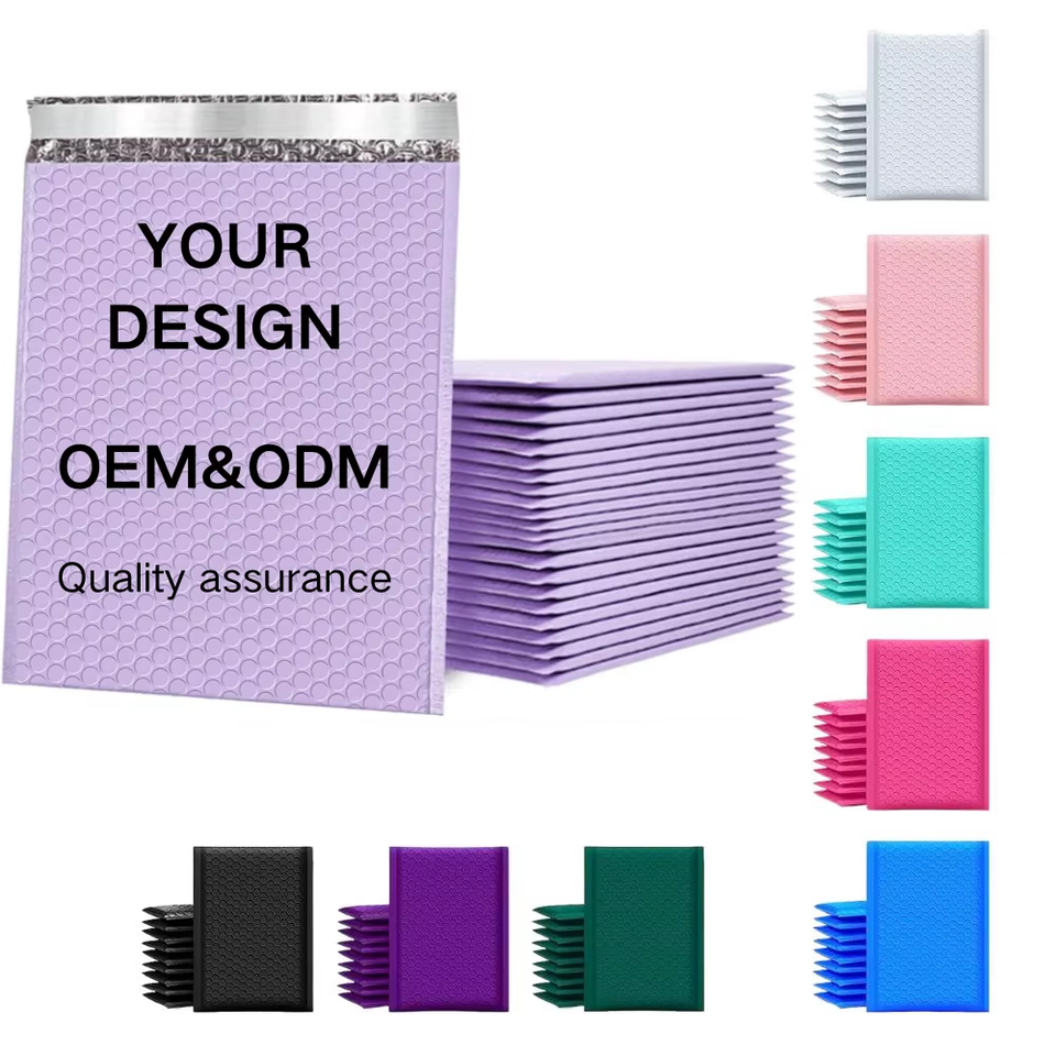 Bolsas de correo de polietileno reciclables Impresión de sobres de paquete de envío acolchados grandes Correo de burbujas personalizado púrpura con logotipo impermeable