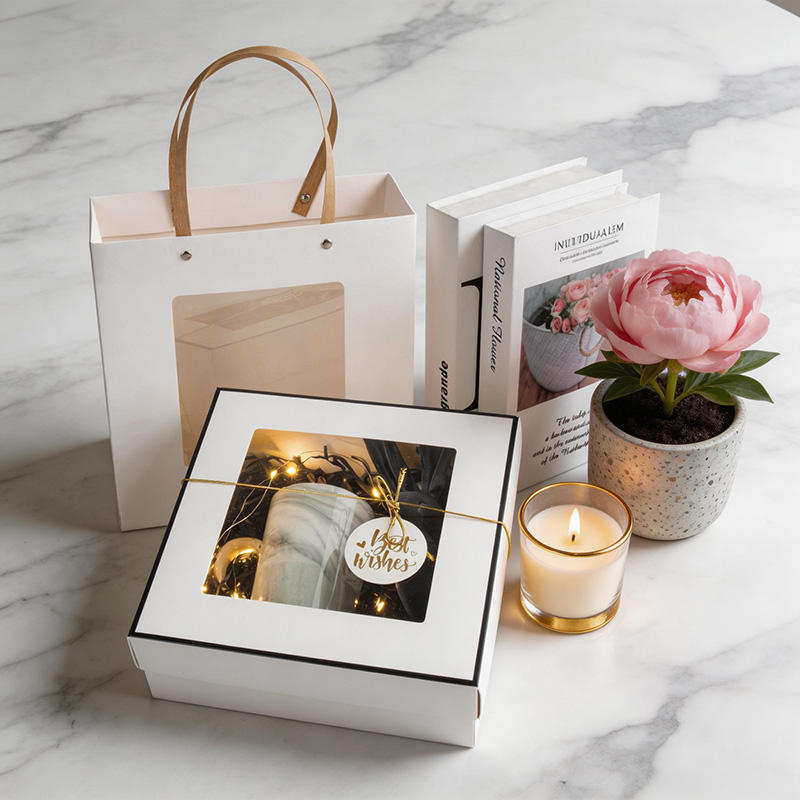 Caja de Regalo Cuadrada de Cartón Reciclable con Ventana y Hermoso Diseño Transparente Plegable, Regalo para el Día de San Valentín - Personalizable