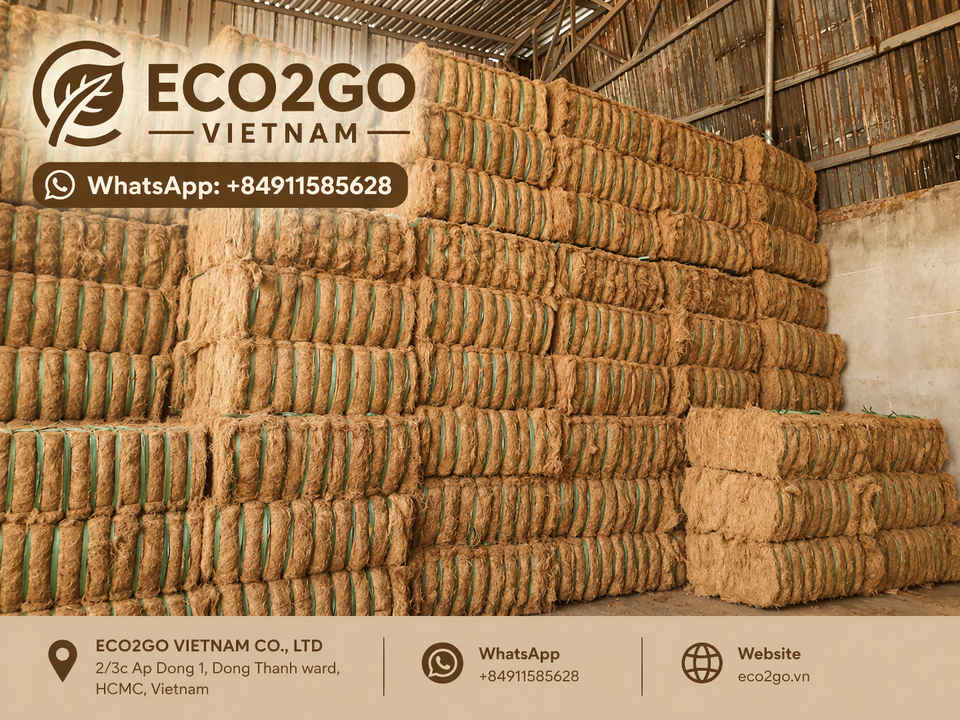 ECO2GO VIETNAM Proveedor de Fibra de Coco Orgánica al por Mayor, Fardos de Alta Calidad Ecológicos, Resistentes a Químicos y a los Rayos UV