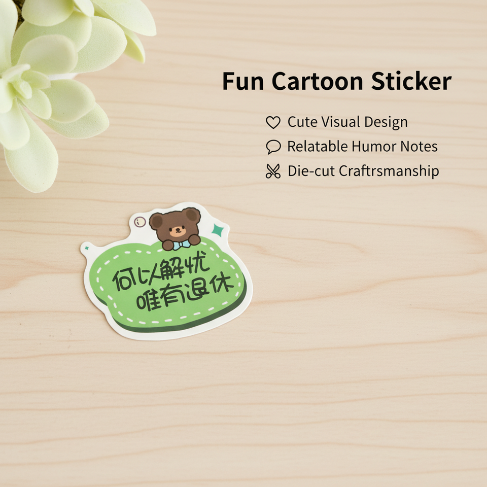 Pegatinas decorativas personalizadas de vinilo PVC mate impreso, recortadas a troquel, impermeables y reciclables, con diseños de dibujos animados.