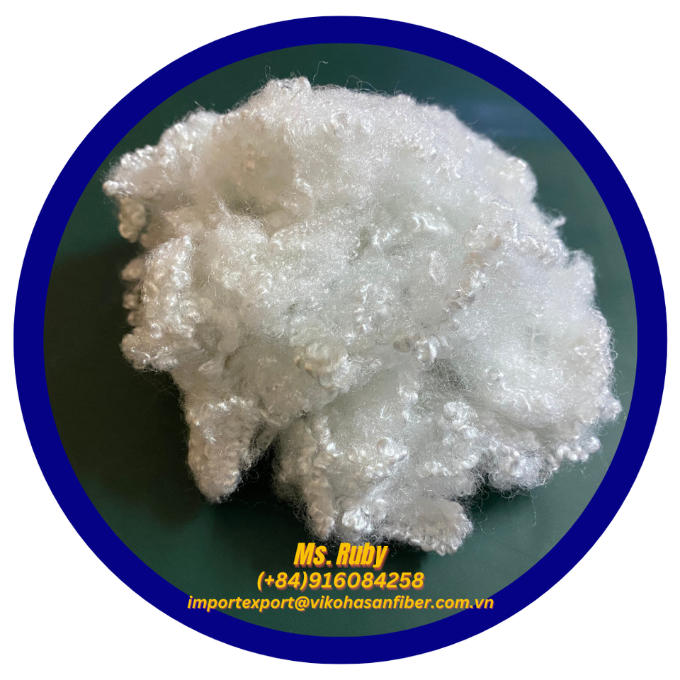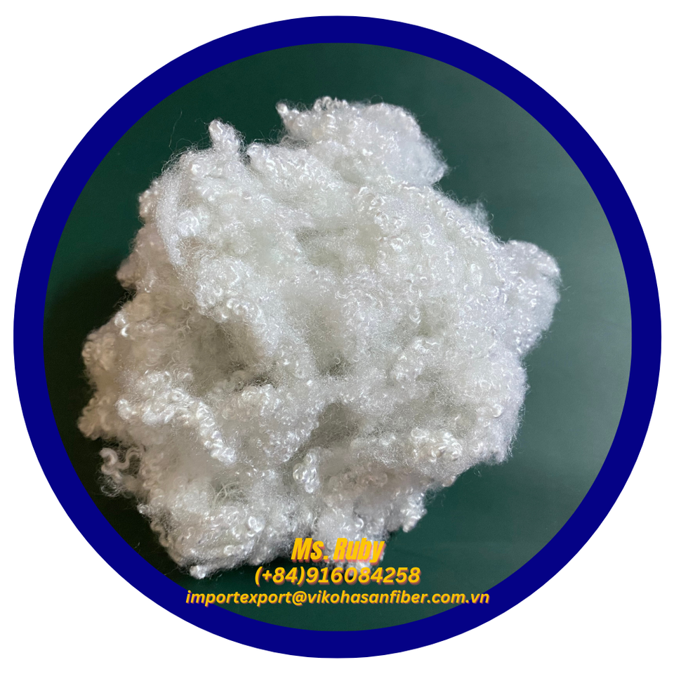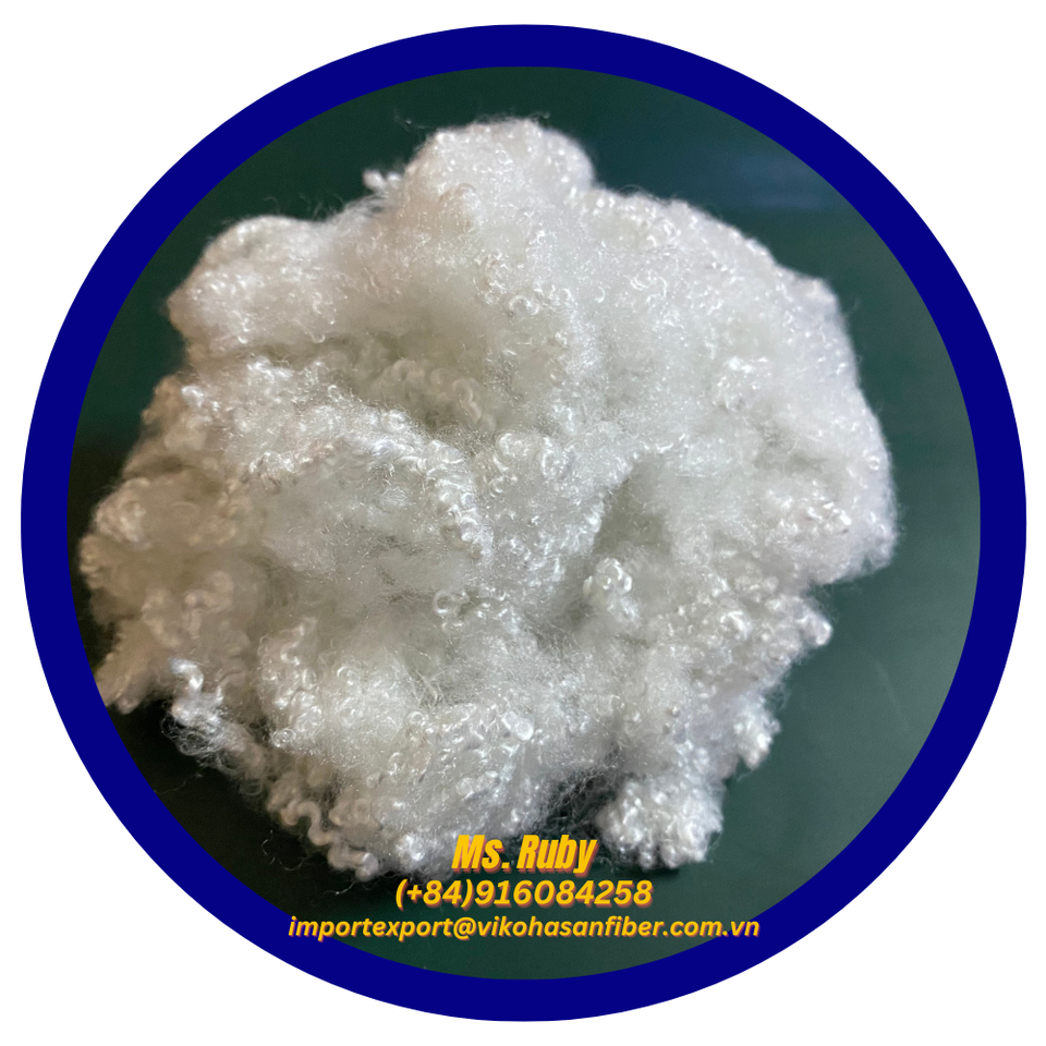 Fibra de poliéster reciclada 7D HC blanca, fibra hueca conjugada reciclada de Vikohasan GRS para relleno de juguetes, almohadas, edredones, cojines y sofás.
