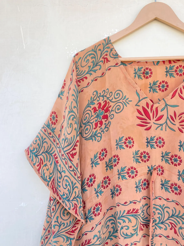 Kaftan de seda reciclada, vestido de lujo, hermoso caftán largo para el verano, otoño, Primavera