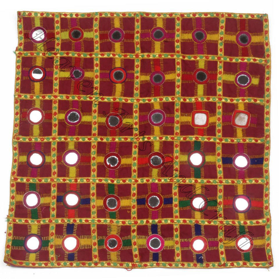 Parche Bordado Multicolor Boho Reciclado, Espejo Tribal Banjara Hecho a Mano, Parche de Bordado con Espejo Indio Kutch