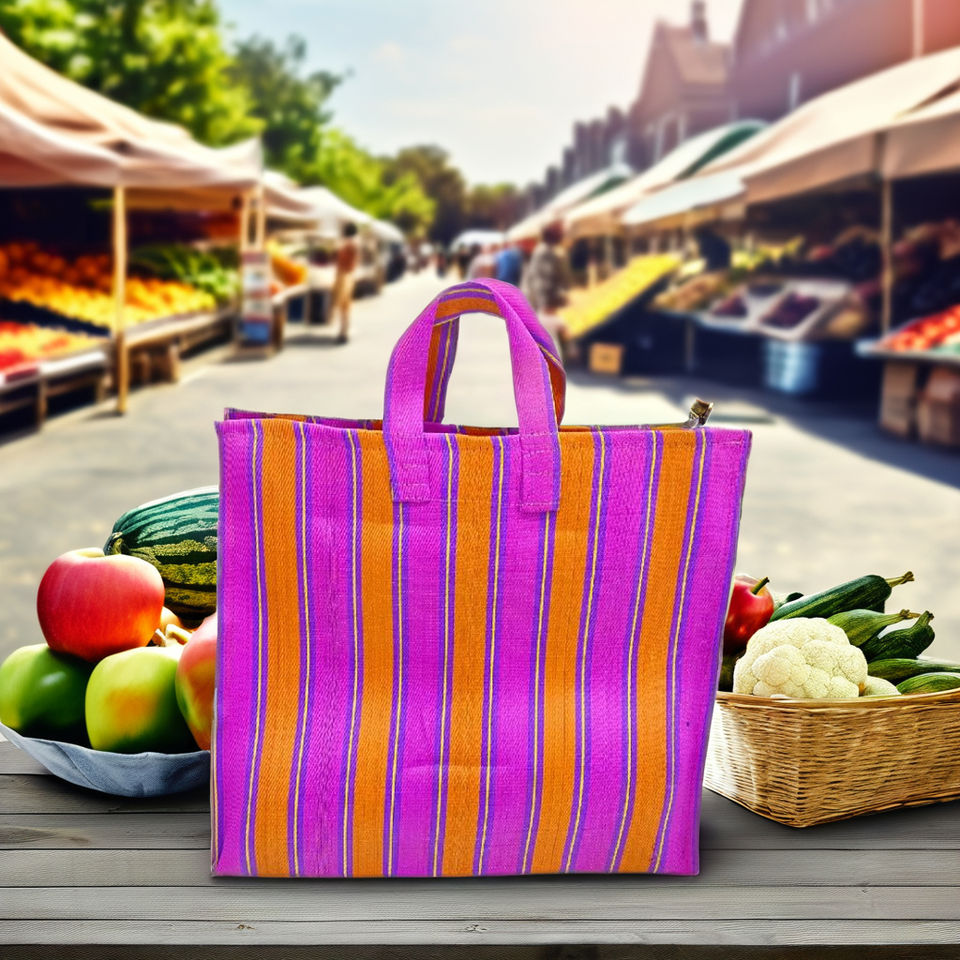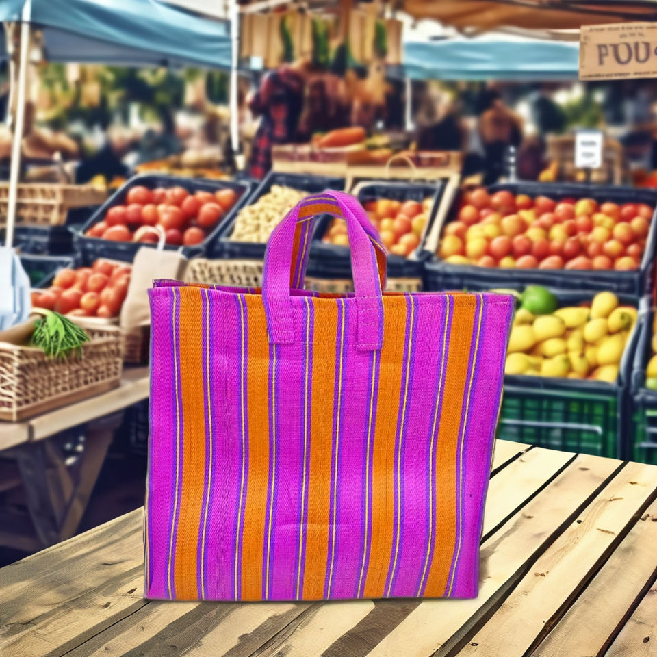 Bolsas de compras hechas a mano tejidas de plástico a rayas tejidas de nailon reciclado y PP hechas en la India bolsas de mercado ecológicas bolsas al por mayor