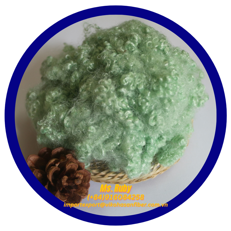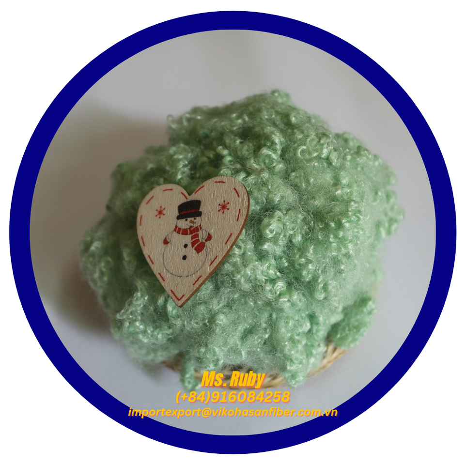 Fibra de Poliéster Reciclada 15D HC Verde Hueca Conjugada GRS para Relleno de Juguetes, Almohadas, Sofás, Mantas, Cojines e Interiores de Automóviles
