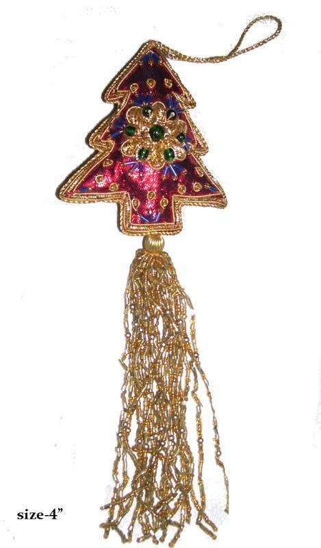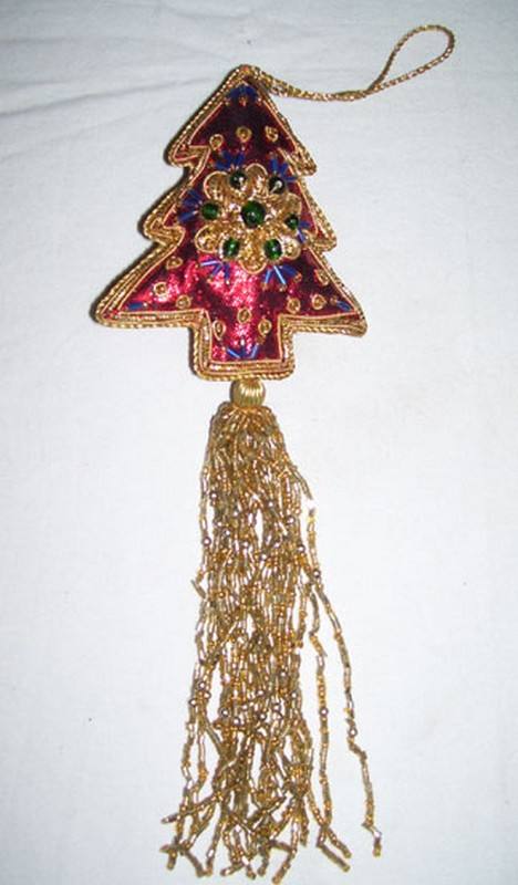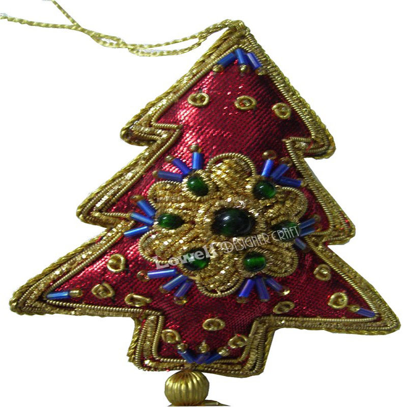Adorno Navideño Cuadrado Rojo Acrílico Hecho a Mano con Gráficos Bordados a Todo Color y Detalle Zari