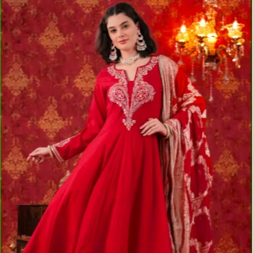 Conjunto Anarkali Rojo con Dupatta Ombre
