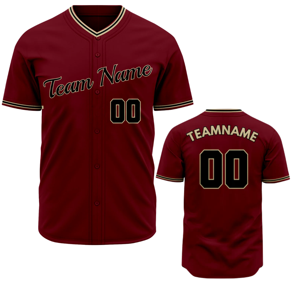 Camiseta de Béisbol Roja de Manga Corta con Botones, Uniforme de Equipo Personalizado, Camisa Deportiva Transpirable de Poliéster para Hombre