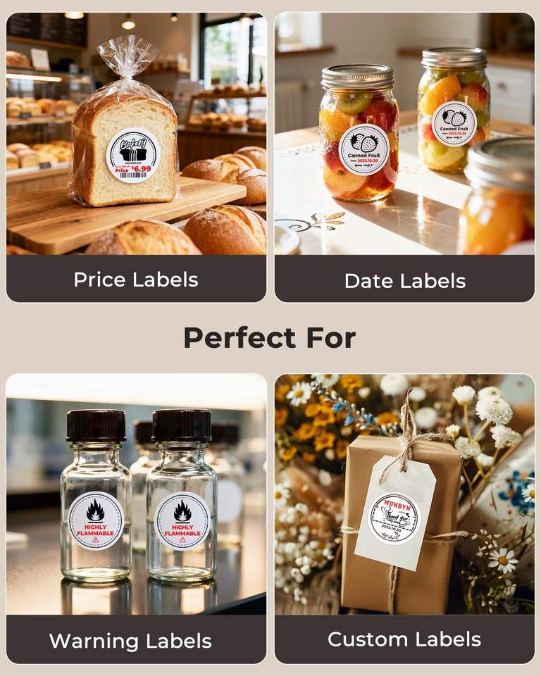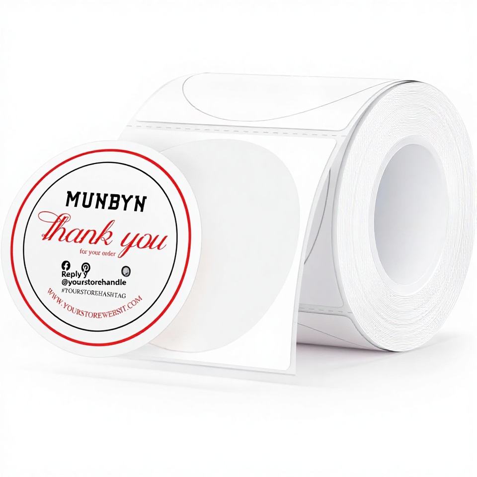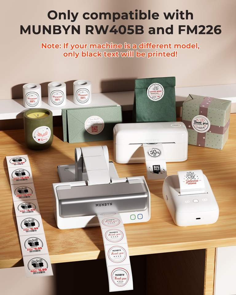 Etiquetas Redondas de Papel Térmico de Doble Color Rojo y Negro MUNBYN RW405 para Escuelas, Negocios, Exposiciones y Supermercados, 150 Hojas/1 Rollo