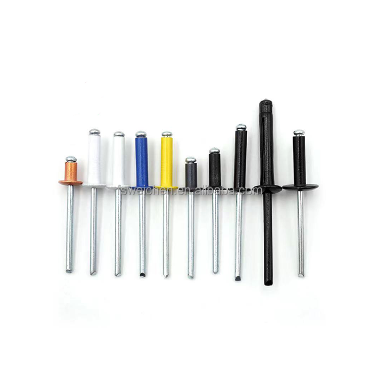 Remaches ciegos de aluminio con cabeza de cúpula de colores (rojo, negro, blanco, amarillo) según norma DIN Clase 6 Grado 6 para paneles decorativos de chapa metálica con recubrimiento en polvo
