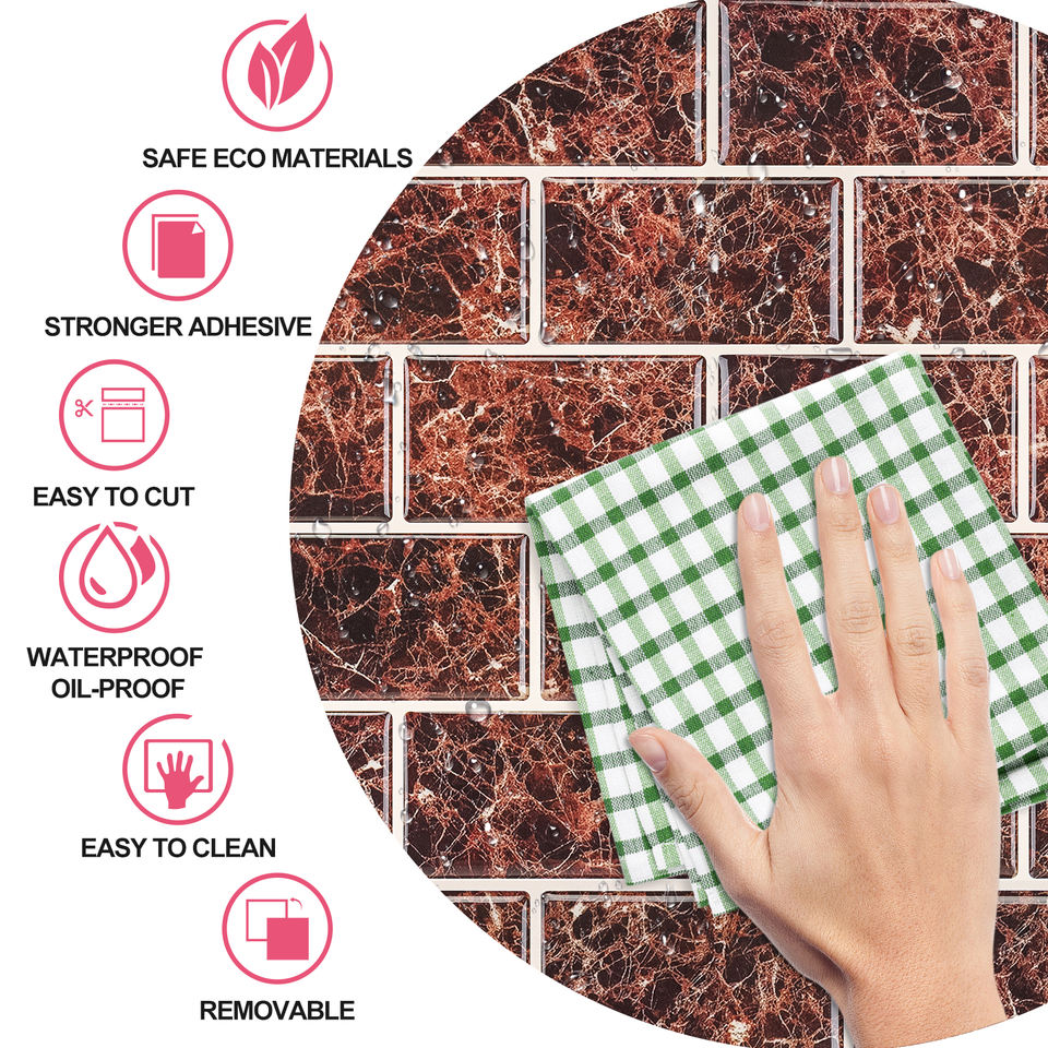 Pegatinas de azulejos de ladrillo rojo Paneles de pared de PVC 3D impermeables Azulejos decorativos de gran formato para pegar y pegar Azulejos de pared decorativos