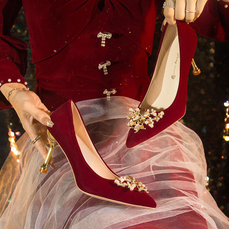 Zapatos de tacón altos cómodos y robustos de talla grande para novia, ideales para el vestido de novia Xiuhe, que no cansan los pies.