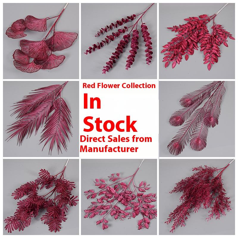 Guía de rosas artificiales con tema rojo borgoña, arreglo floral para boda, decoración del hogar, Material de flor falsa, decoración de Hotel de Pascua