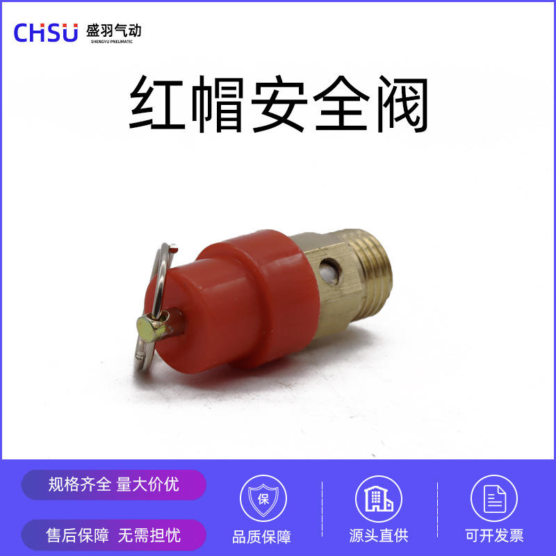 Válvula de Seguridad de Resorte de 2 Puntos y 8 kg con Tapa Roja para Compresores de Aire, Alivio de Presión y Escape con Anillo de Tracción