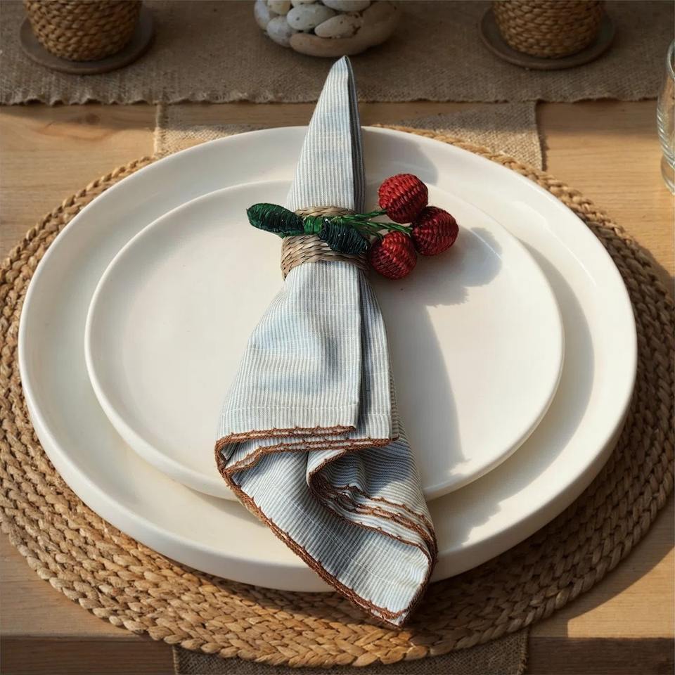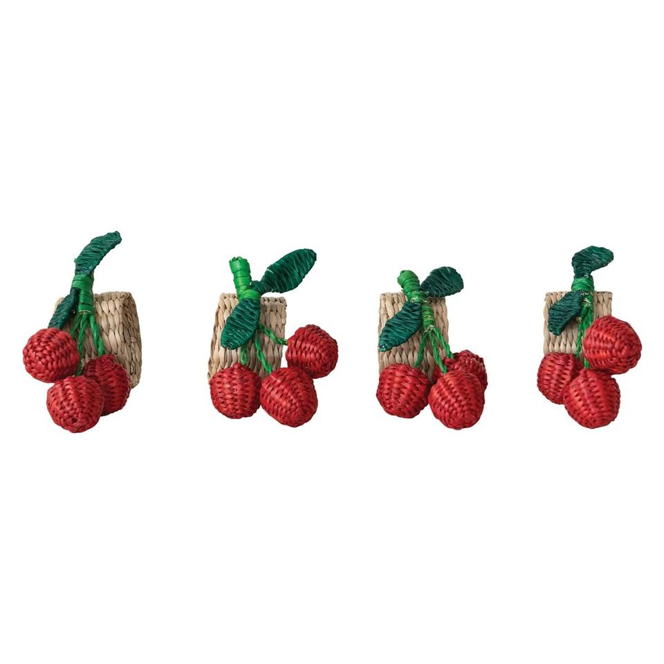 Anillo para servilletas de ratán con forma de cereza roja para una presentación encantadora en mesas de comedor en hogares, cafeterías, restaurantes y eventos especiales, procedente de la India.