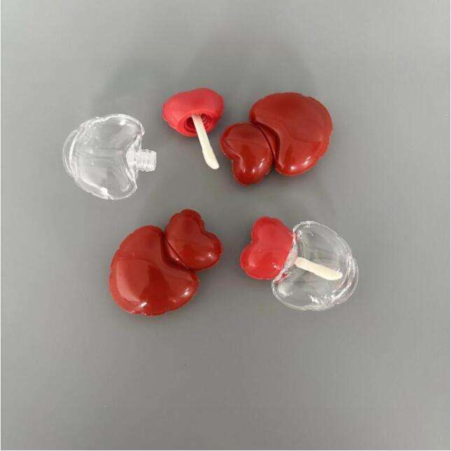 Botella de Brillo Labial de Plástico de 7 ml con Forma de Corazón de Color Rojo, Botella de Lápiz Labial de 7 ml con Pincel