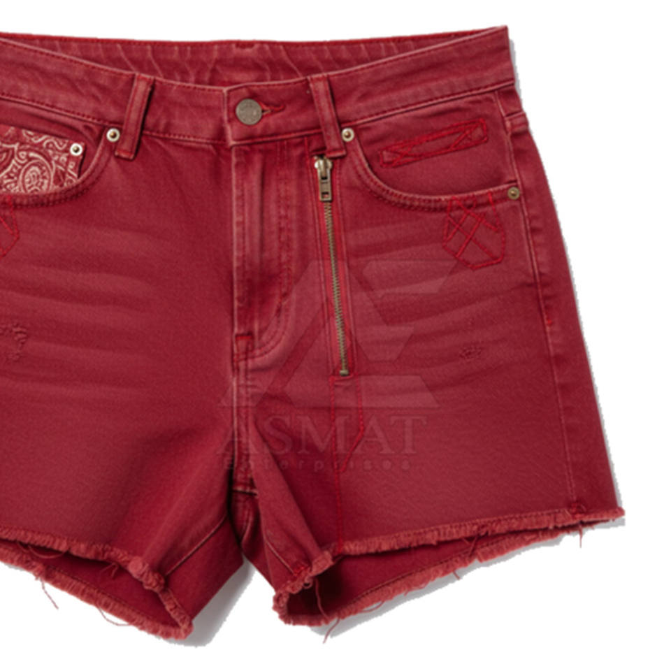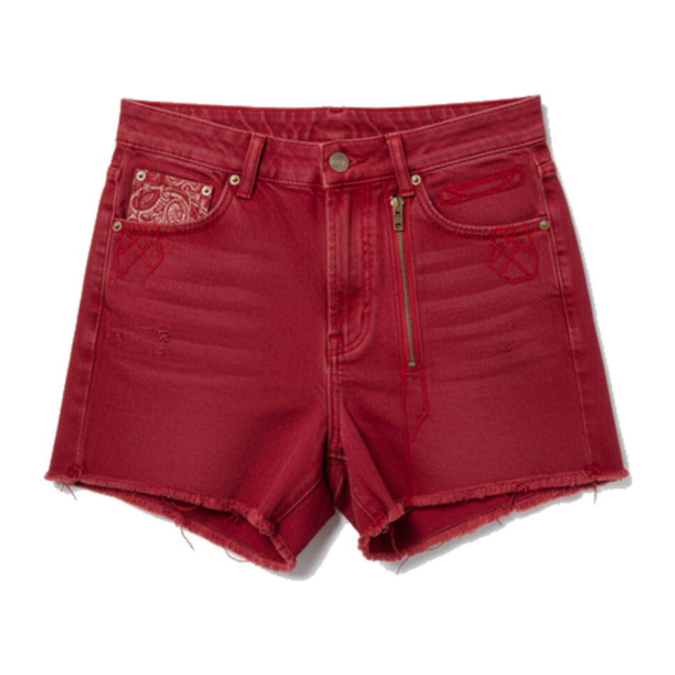 Shorts de Mezclilla Rojos para Hombre, Corte Slim Contemporáneo, Diseño Elegante para Conjuntos de Verano a la Moda 2026