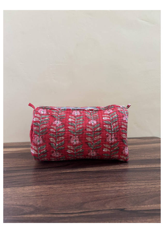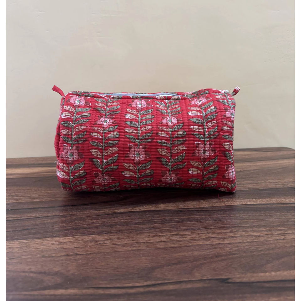 Bolsa de Maquillaje Acolchada de Algodón con Estampado a Mano en Color Rojo, Organizador de Cosméticos de Viaje, Juego de 3 Bolsas, Precio al por Mayor
