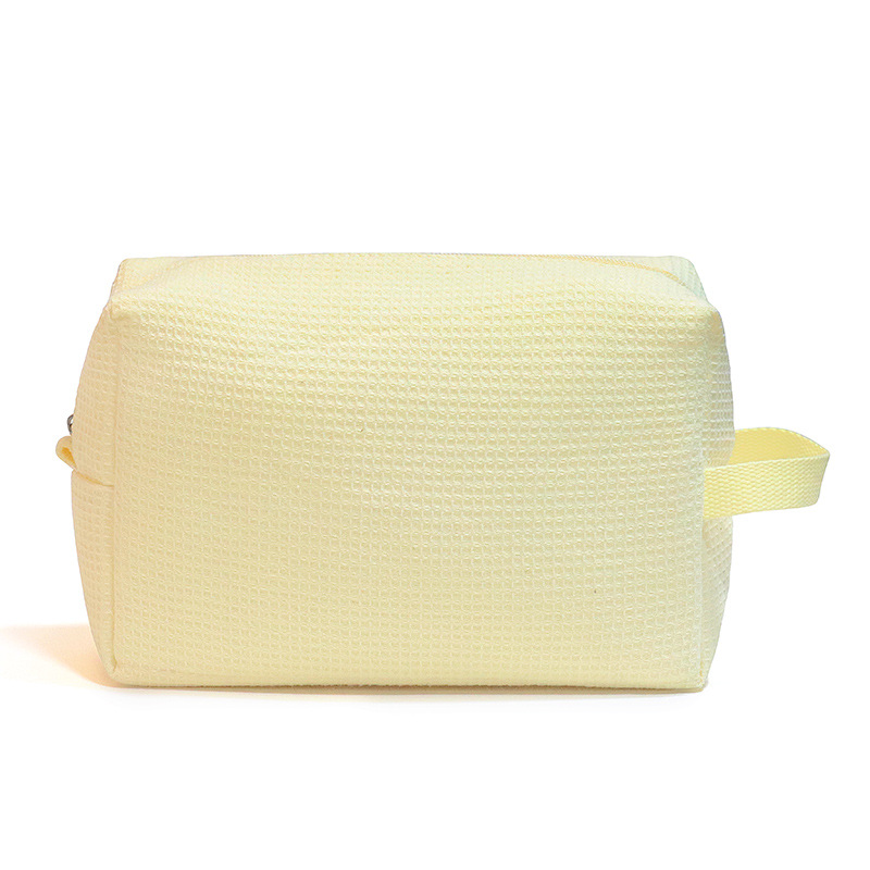 Bolsa de cosméticos pequeña impermeable de viaje barata Material de gofres con logotipo personalizado rojo con cremallera adecuada para la industria de la belleza