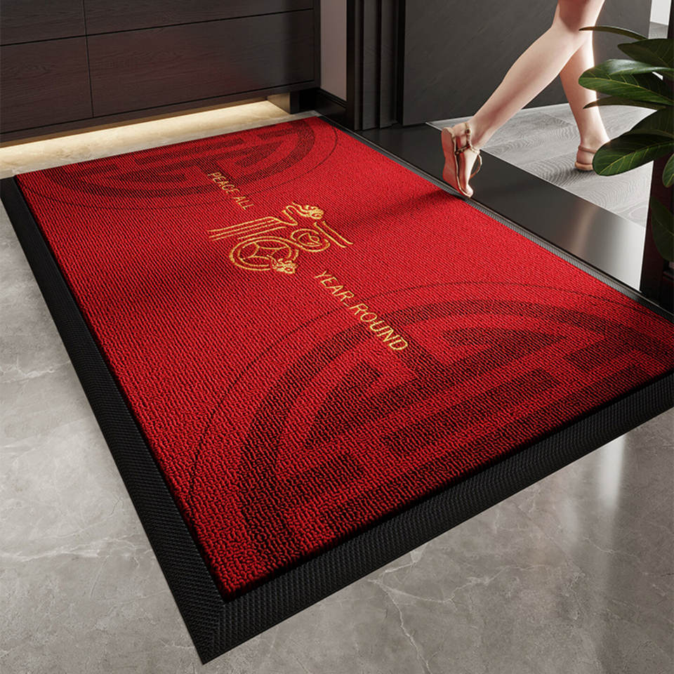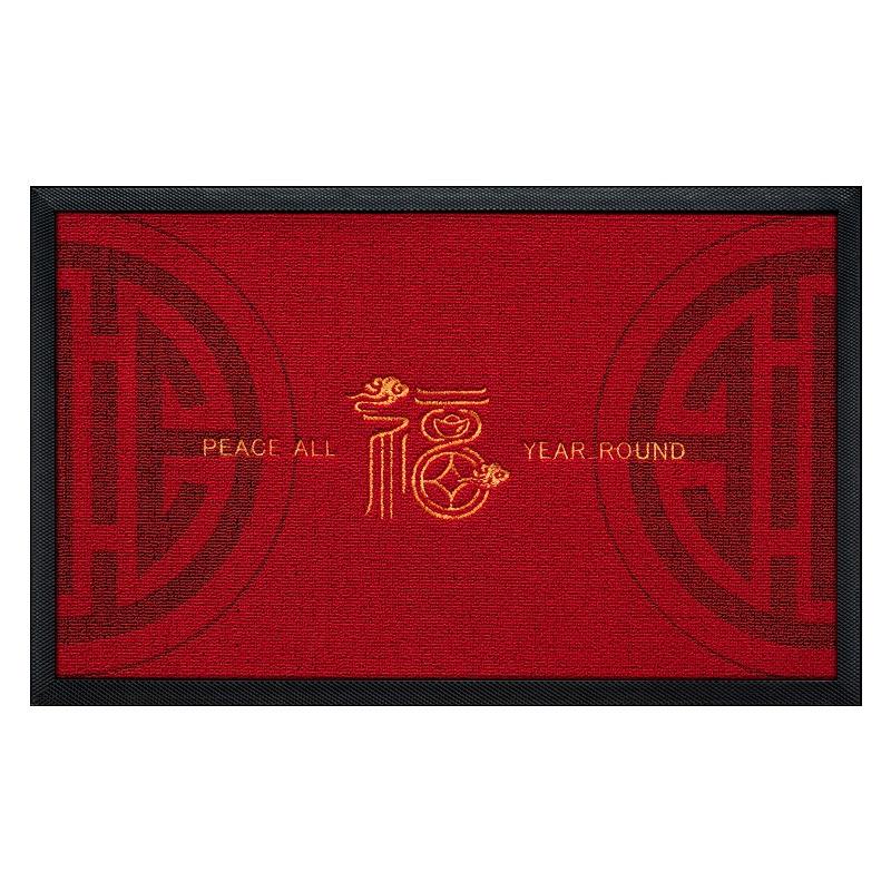 Alfombra roja rectangular de fibra de poliéster antideslizante para entrada de casa, diseño festivo, bordado láser, bendiciones en todas las estaciones
