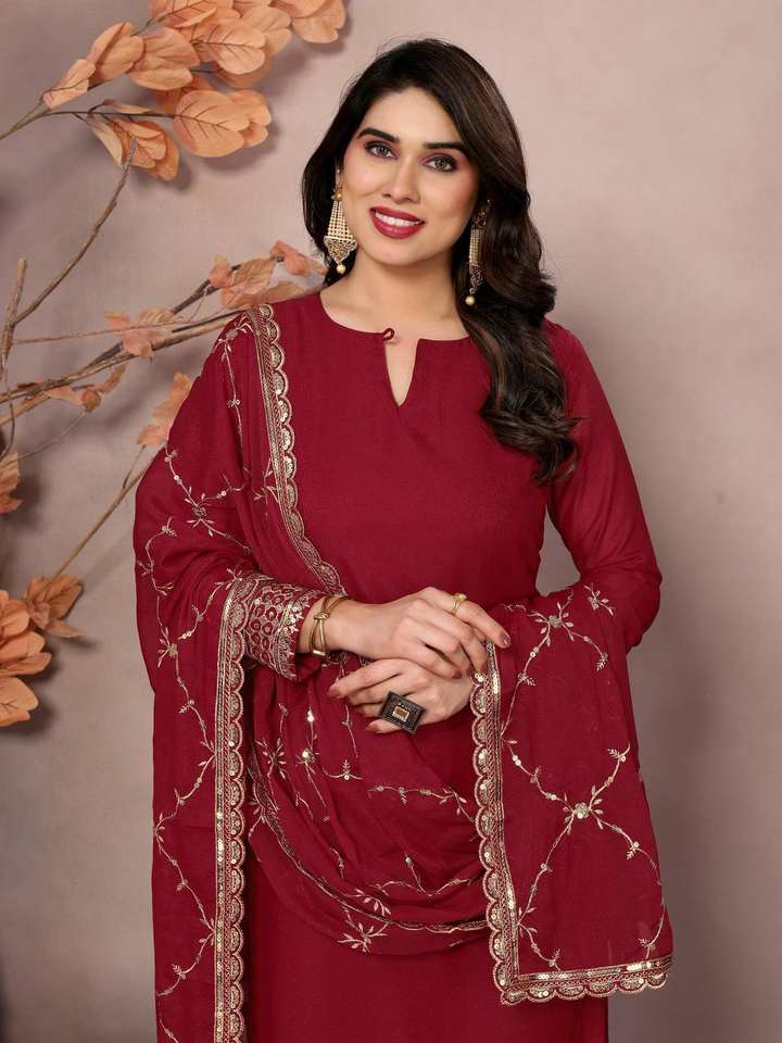 Ropa tradicional de diseñador bordada roja-Traje formal Salwar Kameez de manga larga Traje de fiesta pakistaní de 3 piezas