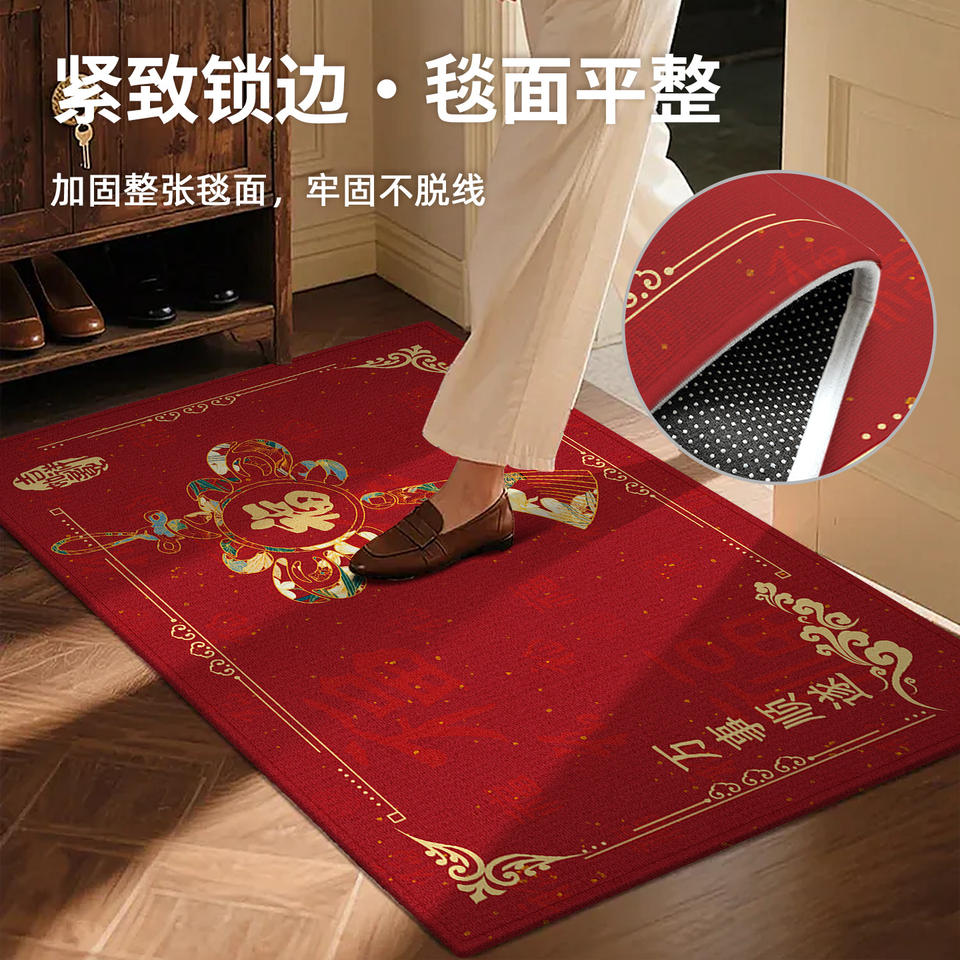 Tapete Rojo para Entrada, Rectangular, de Fibra de Poliéster, Antideslizante, para Uso Doméstico, con Diseño Novedoso
