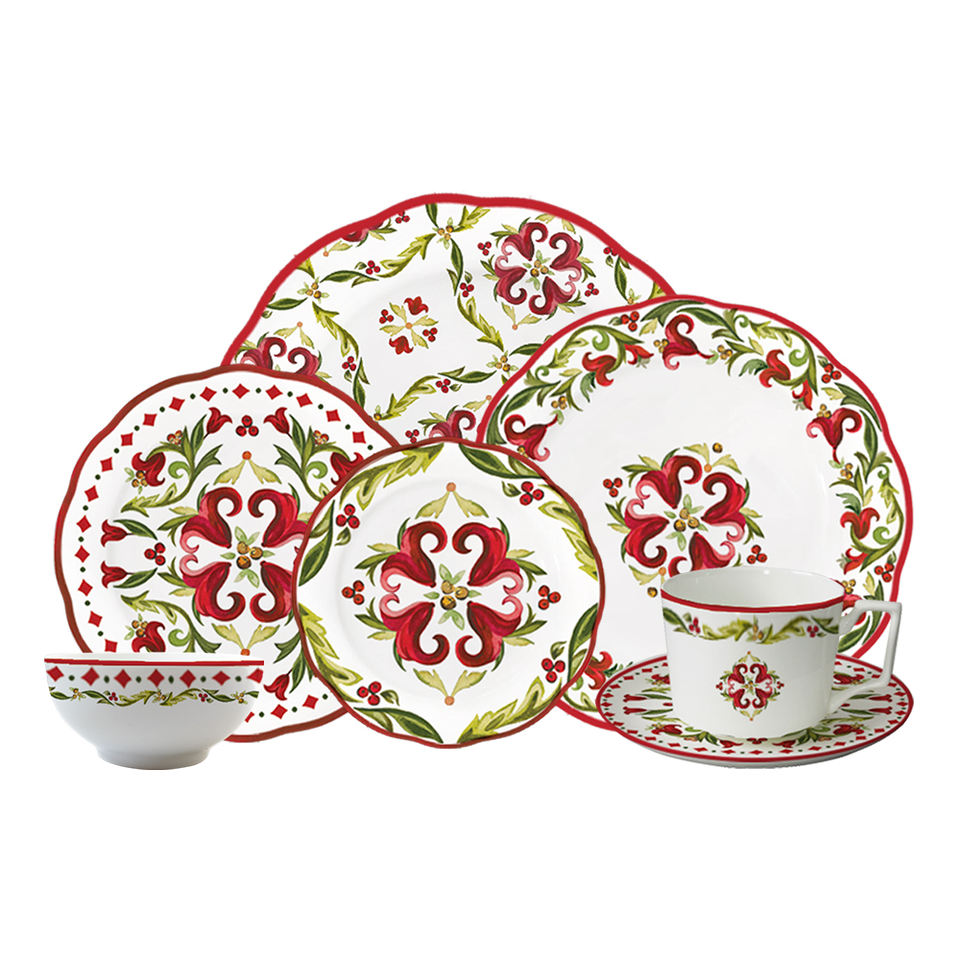 Juego de Vajilla de Cerámica con Diseño Floral Rojo, Platos de Porcelana con Borde Festoneado, Tazas de Estilo Vintage, Vajilla de Porcelana China, Platos para Cocina