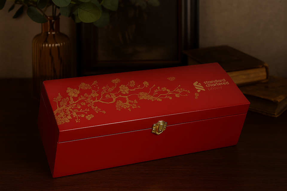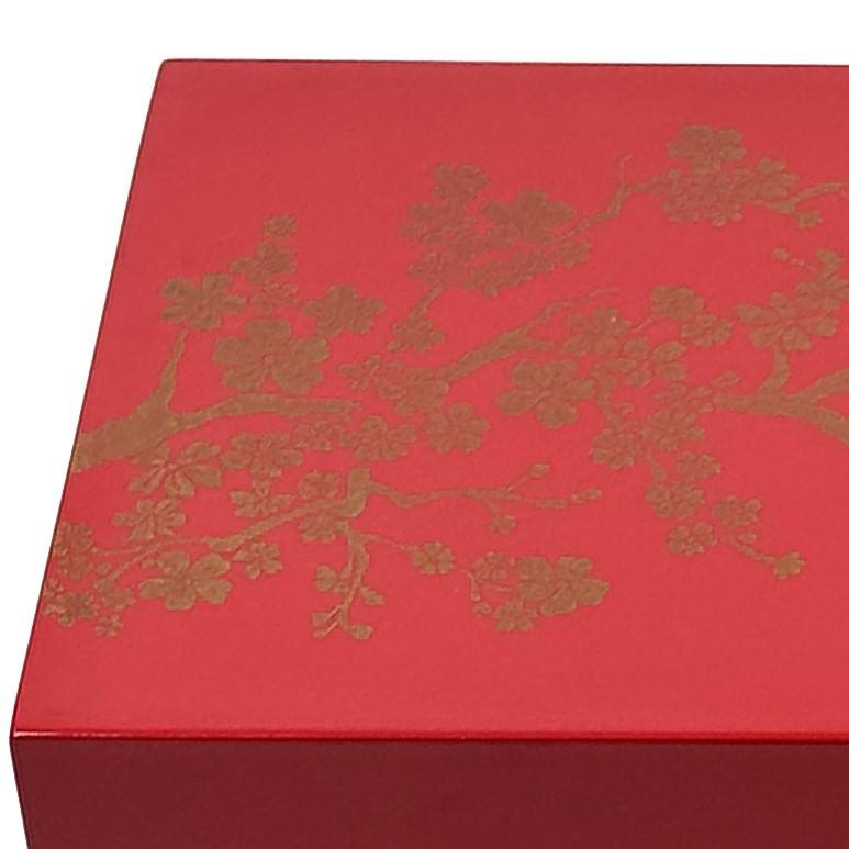 Lacquerworld Patrón floral rojo Lacado MDF Caja de vino duradera Cerradura dorada Hecho a mano Alto brillo Botella individual Caja de regalo personalizada