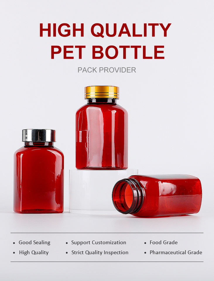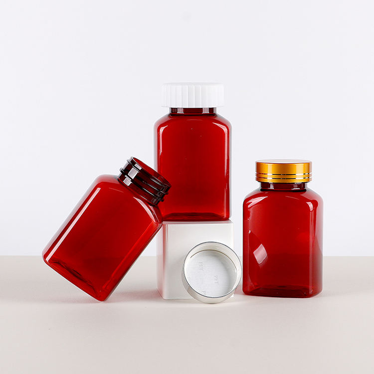 Botella de 150 ml para Suplementos Vitamínicos en Cápsulas, Color Rojo, Grado Alimenticio, con Tapa Metálica de Rosca, Personalizable