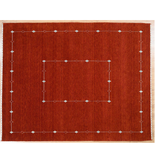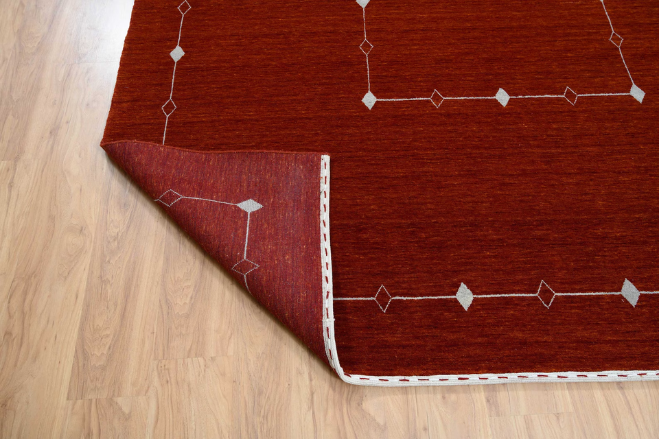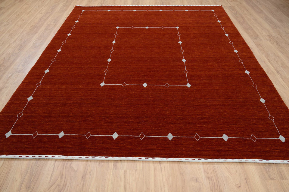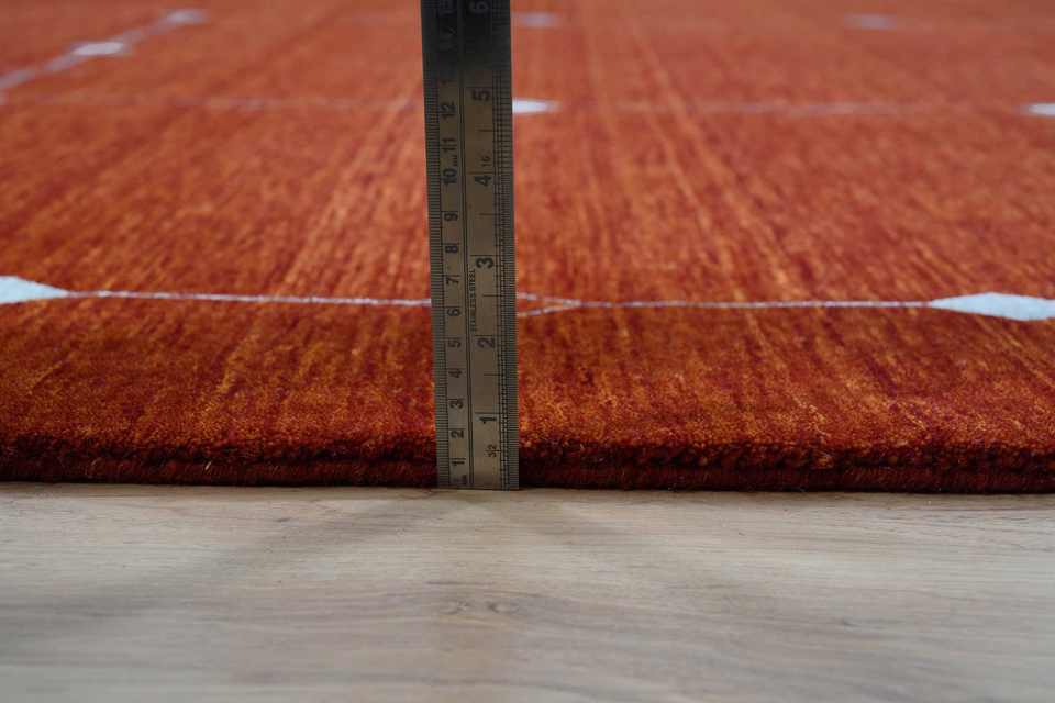 Alfombra de Lana Gabbeh Roja, Tejida a Mano, Decoración Bohemia Cottagecore, Color Rojo Óxido, 8x10, Alfombra Grande para Piso, Hogar Acogedor