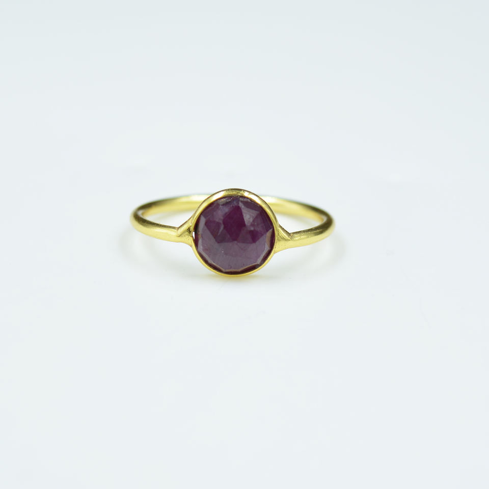 Anillo de ajuste de bisel de piedras preciosas granate rojo Plata de Ley 925 estilo Vintage corte facetado joyería fina para bodas Color dorado