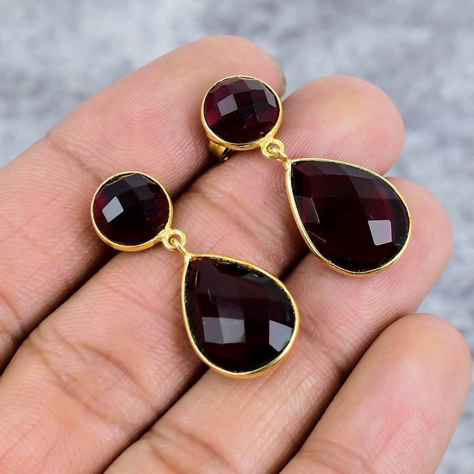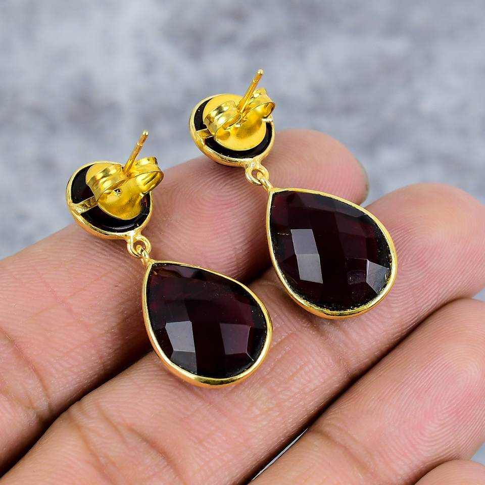 Pendientes colgantes de piedras preciosas de granate rojo Plata de Ley 925 chapados en oro hechos a mano en forma de pera pendientes llamativos bohemios-para regalo de fiesta
