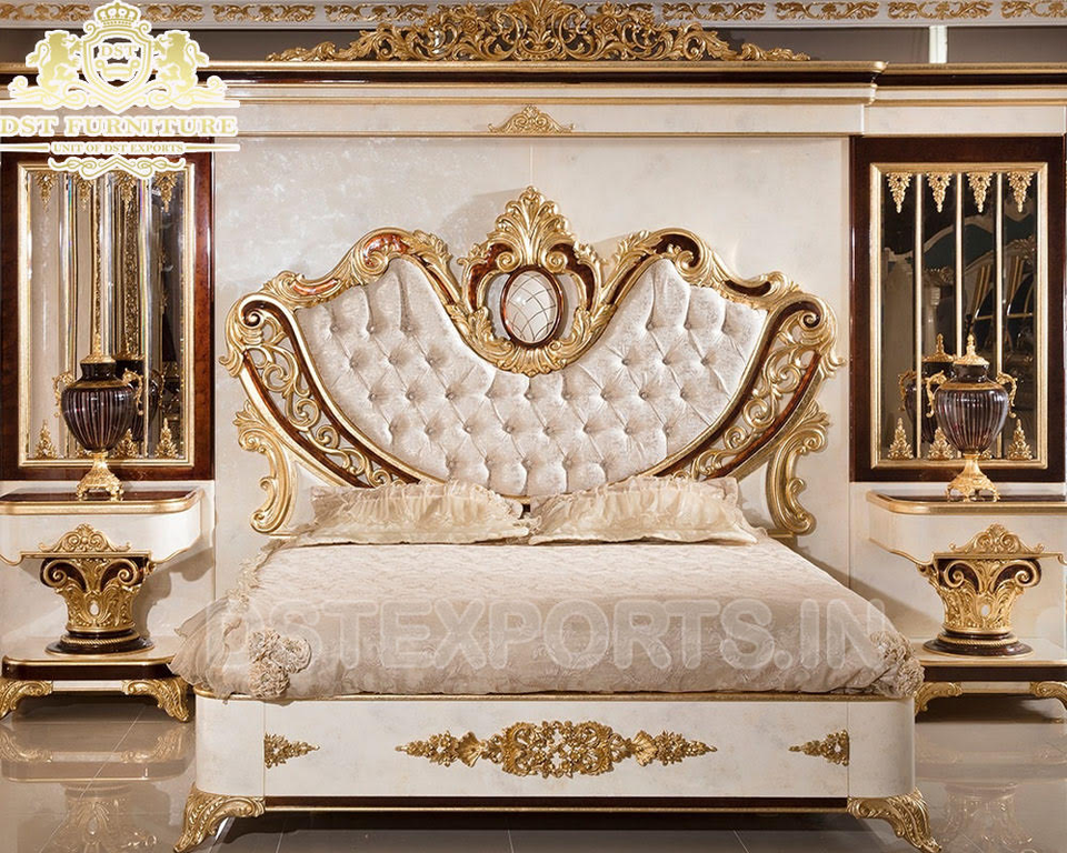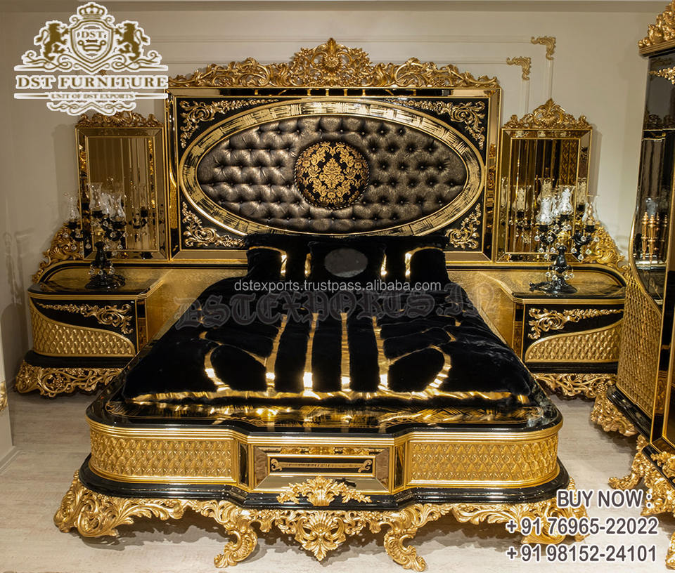 Red Gold King Size Wooden Bed & Bedroom FurnitureProduct name
