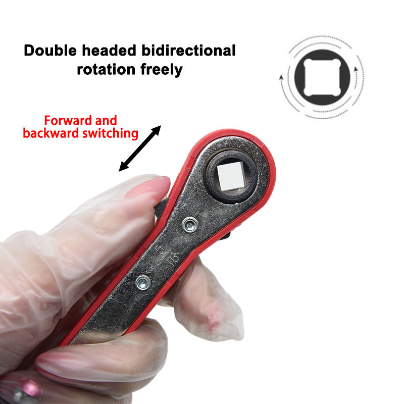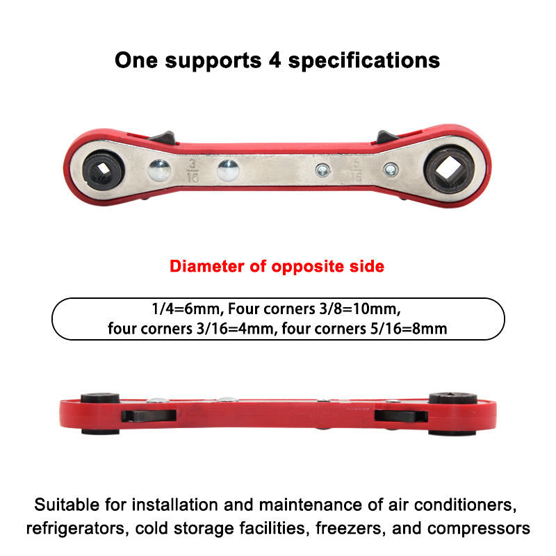 Llave de Trinquete Reversible de Doble Extremo con Empuñadura Roja de 4 Puntos | Herramienta de Servicio para Válvulas de Refrigeración HVAC para Reparación de Aires Acondicionados