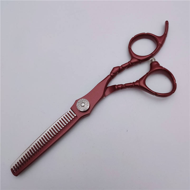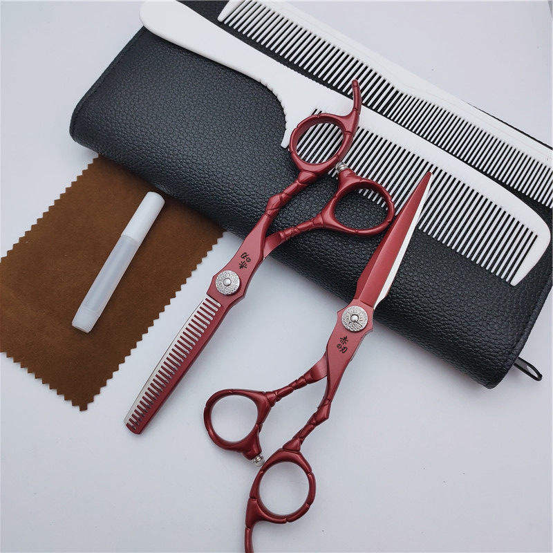 Tijeras de Peluquería Rojas HV-6 de Acero Inoxidable, Tijeras de Entresacar, Tijeras Planas, Mango Mediano, Herramientas Profesionales para Estilistas